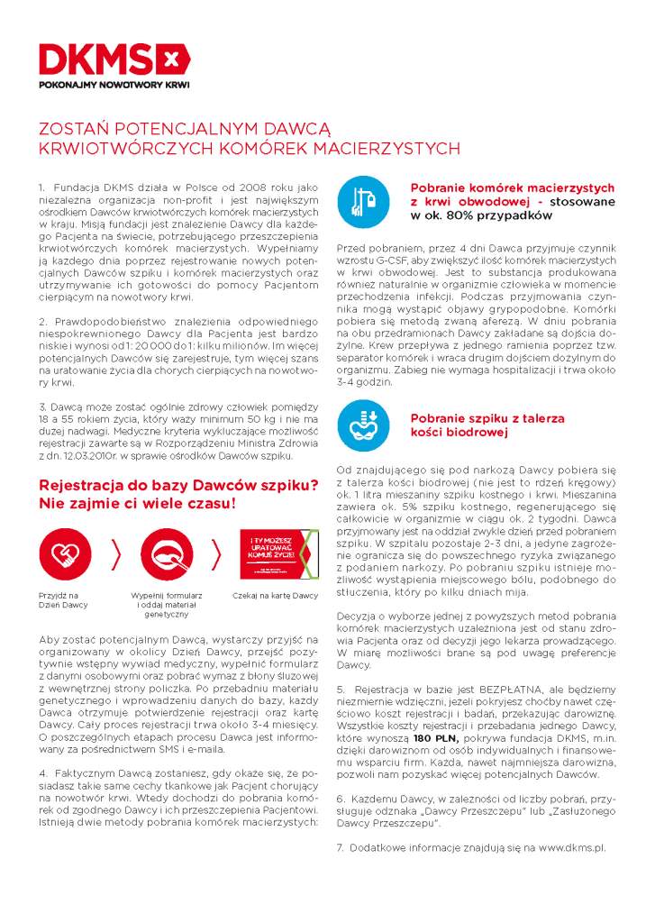 w załączniku przekazuję przesłaną przez organizatora informację na temat akcji : „Krakowskie Dni Dawcy Szpiku” w celu stosownego wykorzystania. Jednocześnie informuję, że akcja ta została objęta honorowym patronatem Prezydenta Miasta.