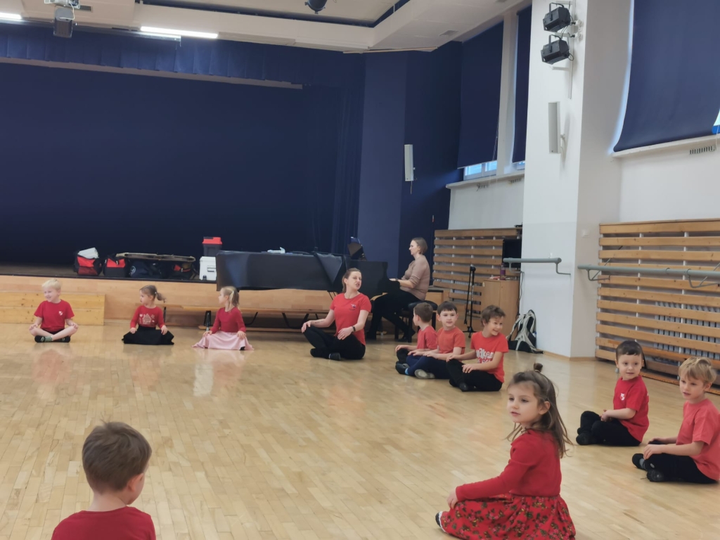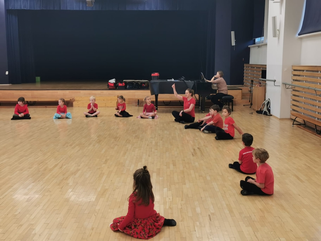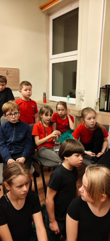 Wszyscy uczestnicy zajęć przyszli na próbę w czerwonych koszulkach. Kolor czerwony to barwa rozpoznawcza ogólnopolskiej kampanii „Dzieciństwo bez Przemocy”, w którą Zespół się włączył.
