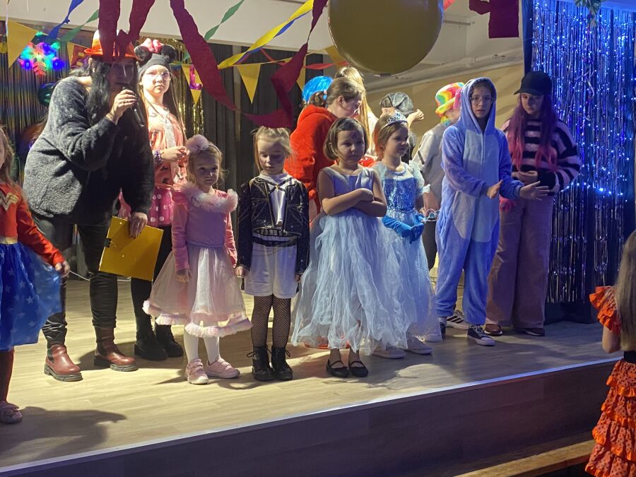 Pomysłowość i staranność kostiumów zachwyciły wszystkich obecnych. Gdy tylko rozbrzmiała muzyka, parkiet natychmiast zapełnił się tańcem. Dzieci bawiły się przy „Tańcach–łamańcach”, „Muzycznym pociągu”, „Kaczuchach”, „Macarenie”, „Tańcu z balonem” oraz podczas zabawy „Znajdź kogoś, kto…”.