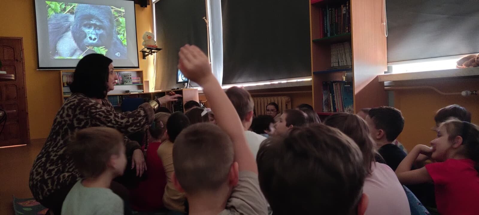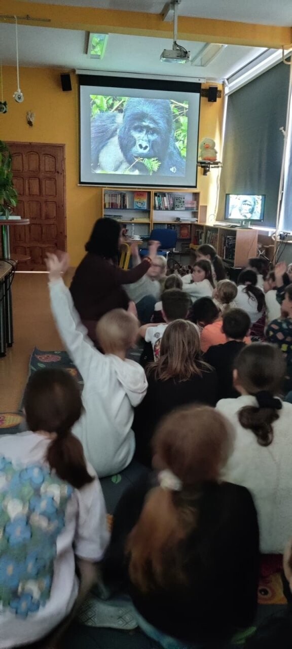 W bibliotece Szkoły Podstawowej z Oddziałami Integracyjnymi nr 90 im. Polskich Kawalerów Maltańskich odbyły się wyjątkowe spotkania z Dorotą Kozarzewską – autorką książek, podróżniczką oraz pierwszą polską przewodniczką po buszu. W wydarzeniu uczestniczyli uczniowie klas 1, 2 i 4. Podczas spotkań Mama Busz opowiadała o życiu i działalności dr Jane Goodall, światowej sławy badaczki naczelnych. Uczniowie dowiedzieli się, że szympansy są naszymi najbliższymi kuzynami, poznali ich zwyczaje oraz znaczenie ochrony dzikiej przyrody. Warto podkreślić, że pani Dorota odwiedziła naszą szkołę już po raz drugi. Jej opowieści wzbudziły duże zainteresowanie i były dla uczniów cenną lekcją przyrody oraz wiedzy o świecie. Z radością czekamy na kolejne spotkanie.