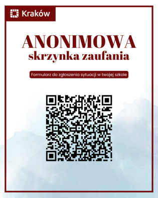 Chcę, aby szkoła była miejscem, w którym każdy czuje się bezpiecznie i ma prawo do szacunku. Dlatego uruchamiam anonimowy formularz zgłoszeń, w którym możecie podzielić się informacjami o sytuacjach, które budzą Wasz niepokój - np. przemoc, poniżanie, łamanie praw czy inne nieprawidłowości.