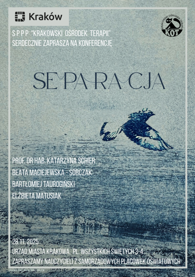 [AKTUALIZACJA 18.11.] Specjalistyczna Poradnia Psychologiczno-Pedagogiczna „Krakowski Ośrodek Terapii” zaprasza do udziału w konferencji Dyrektorów, Nauczycieli, Psychologów, Pedagogów i innych Specjalistów pracujących z dziećmi i młodzieżą w szkołach i placówkach oświatowych prowadzonych przez Gminę Miejską Kraków. Szczegóły w komunikacie.