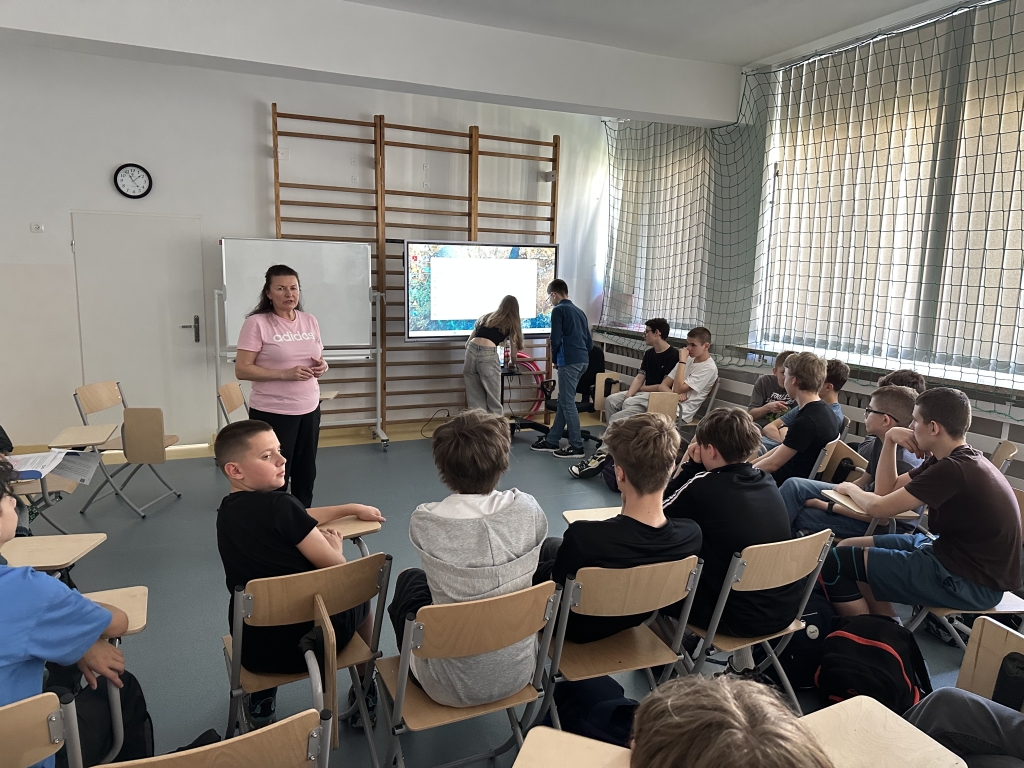 24 lutego, uczniowie klasy 7c z nr 162 w Krakowie spotkali się z uczniami 7c Szkoły Podstawowej z Oddziałami integracyjnymi nr. 151 na terenie szkoły nr 151 w ramach projektu #Ogarniam życie cyfrowo…. Spotkanie miało na celu ustalenie dalszych działań w ramach projektu. Uczniowie zostali podzieleni na 5 grup, w których opracowali pomysły na temat jak spędzać czas w szkole na przerwach bez używania telefonu, co w szkole zmienić lub zrobić, żeby inaczej, aktywnie spędzać przerwy. Omówiliśmy temat dotyczący zasadności używania telefonu. Efektem naszej pracy były ciekawe pomysły np. zorganizowanie stolików przed sklepikiem szkolnym, sportowe przerwy na sali gimnastycznej itp.