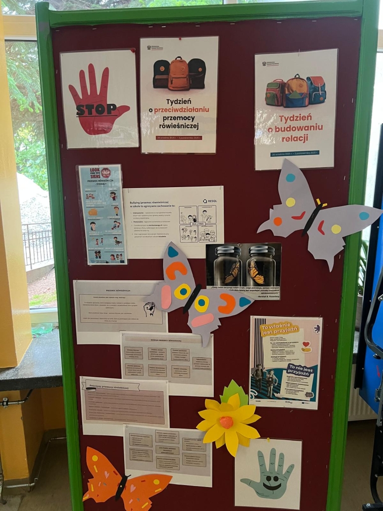 - Na korytarzu szkolnym rozwieszono gazetkę i plakaty dot. przemocy rówieśniczej i reagowania na nią.
