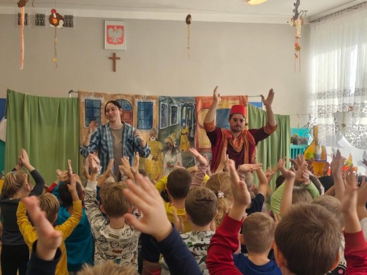 - Dzieci oglądały pełen wzruszeń spektakl pt.”Prawdziwy skarb” w wykonaniu Teatru Eden” - to opowieść o Tomaszu, który pewnego dnia postanowił porzucić dotychczasowe życie i wyruszył w pełną przygód, ale i niebezpieczną podróż do miasta, by odnaleźć prawdziwy skarb. Jak się okazało, główny bohater musiał opuścić rodzinny dom, by dowiedzieć się co jest w życiu najważniejsze. Przedszkolaki nauczyły się jak ważne jest posłuszeństwo wobec rodziców oraz zrozumiały, kim jest prawdziwy przyjaciel. Odkryły też prawdę :„nie szata zdobi człowieka”.