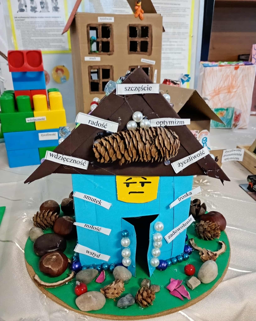 Ważnym elementem Tygodnia Budowania Relacji było zaangażowanie rodziców. W domu wraz ze swoimi dziećmi tworzyli oni „Dom Pełen Emocji” – konstruowali przestrzenne domki, na których umieszczali nazwy emocji, które go tworzą. Metaforyczne przedstawienie sposobu budowania pozytywnych relacji w rodzinie, zaowocowało wystawą na holu głównym przedszkola, gdzie rodziny mogły podziwiać wspólne dzieło i zastanowić się nad tym, jak emocje współtworzą rodzinne więzy.