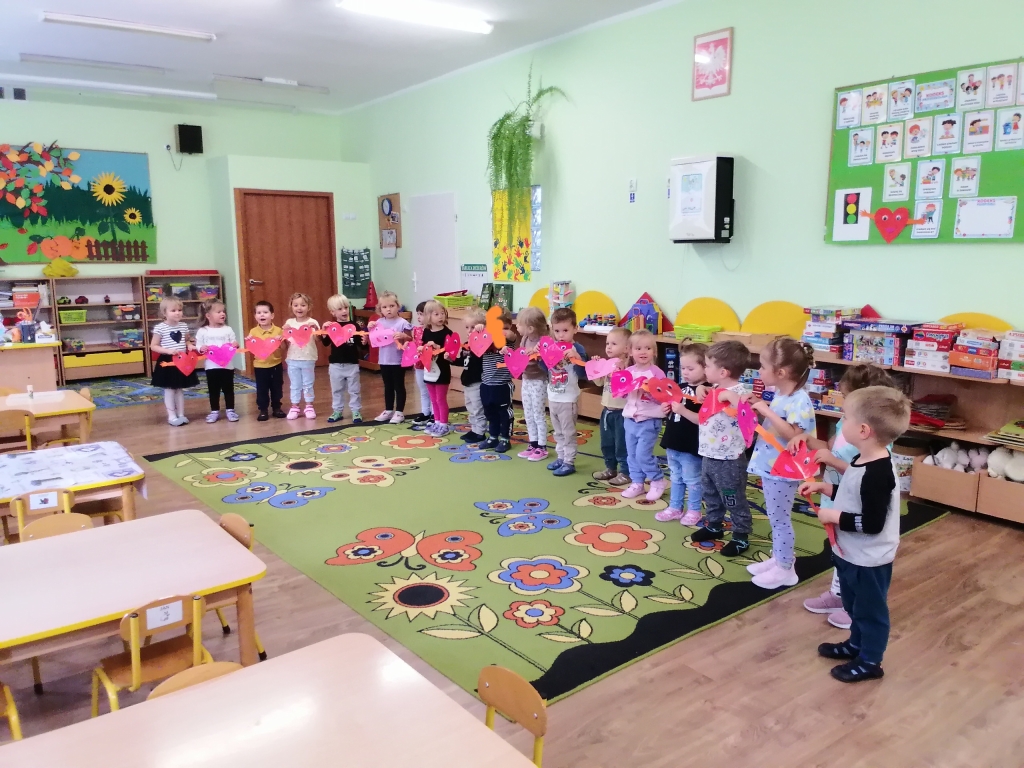 Jesteśmy jedną grupą, zabawa z serduszkami-Samorządowe Przedszkole nr 6 im. H. Jordana w Krakowi