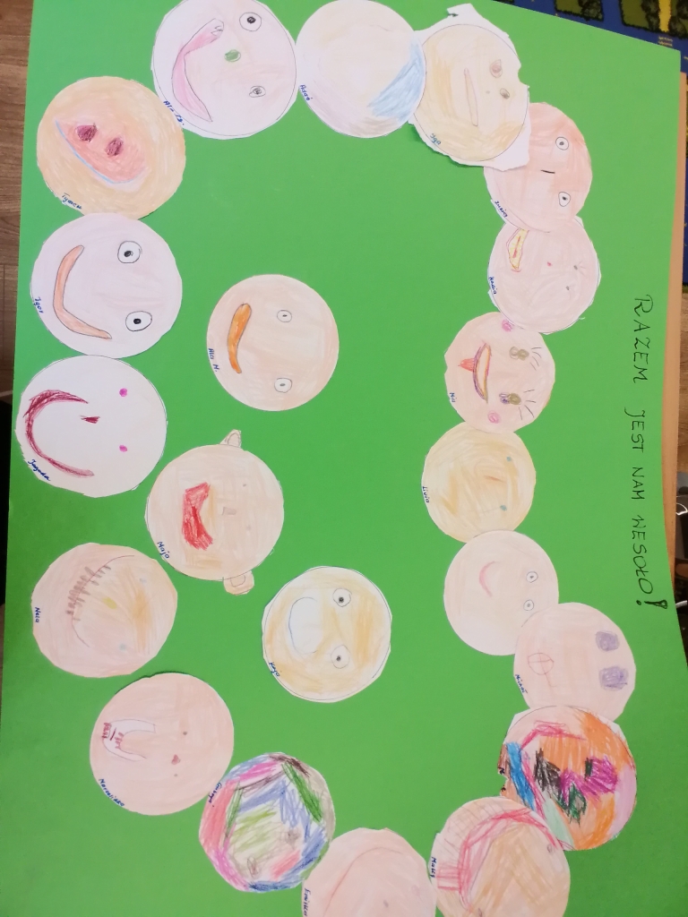 Wspólna praca dzieci obejmowała także działania integrujące środowisko przedszkolne; tworzono z dziećmi „Kodeksu życzliwości”, wykonywano „Pudełka dobrych emocji”, codziennie realizowano poranne „Kręgi przyjaźni”, które integrowały dzieci i pomagały im rozpocząć dzień w bezpiecznej, wspierającej atmosferze.