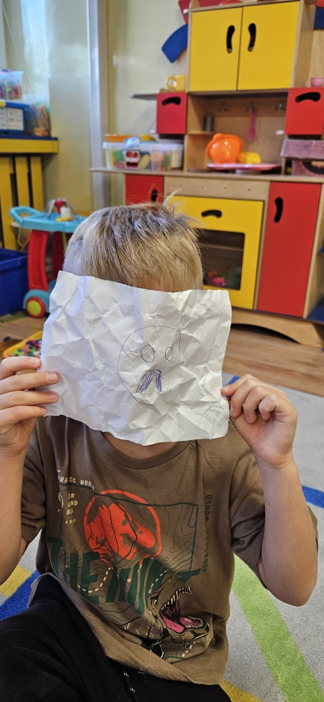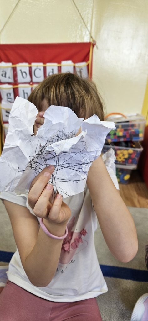 Dzieci narysowały złość, a następnie wyrzucały ją z siebie w formie zgniecionej kartki.