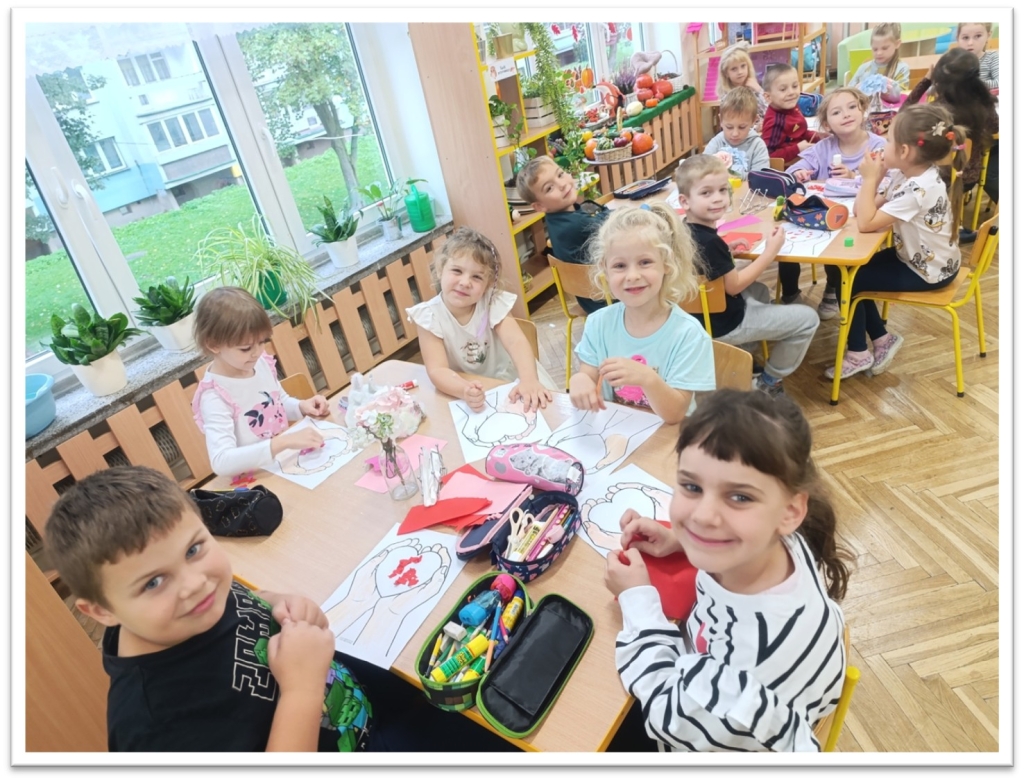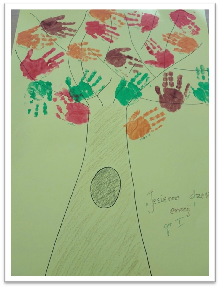 Wykonaliśmy szereg prac plastycznych tj.: ,,Drzewko emocji”; plakat pt „Serduszka z przyjaźni”; „Moje emocje”; „Serce na dłoni”; „Drzewo dobrych myśli”. Dzieci uczestniczyły w zajęciach z panią psycholog ,,Emocje, słowa i zachowania”.