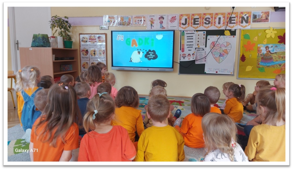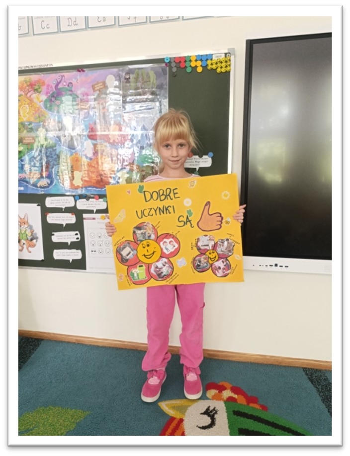 W młodszych grupach dzieci miały za zadanie przez cały tydzień przynosić wypisane dobre uczynki na czerwonych serduszkach, które umieszczały na „Drzewku Dobrych Uczynków”. Obejrzeliśmy filmy edukacyjne np. Fundacji Dajemy Dzieciom Siłę ,,Gadki z psem”- proste rozmowy na trudne tematy oraz „Pudełko emocji” (zapoznanie z bohaterką, która schowała swoje emocje do pudełka i z tego powodu była bardzo nieszczęśliwa) oraz „ Próba przyjaźni- zazdrość” Próbowaliśmy odpowiedzieć na pytania „ Czy emocje są w życiu potrzebne?” „Czym jest uczucie zazdrości?.
